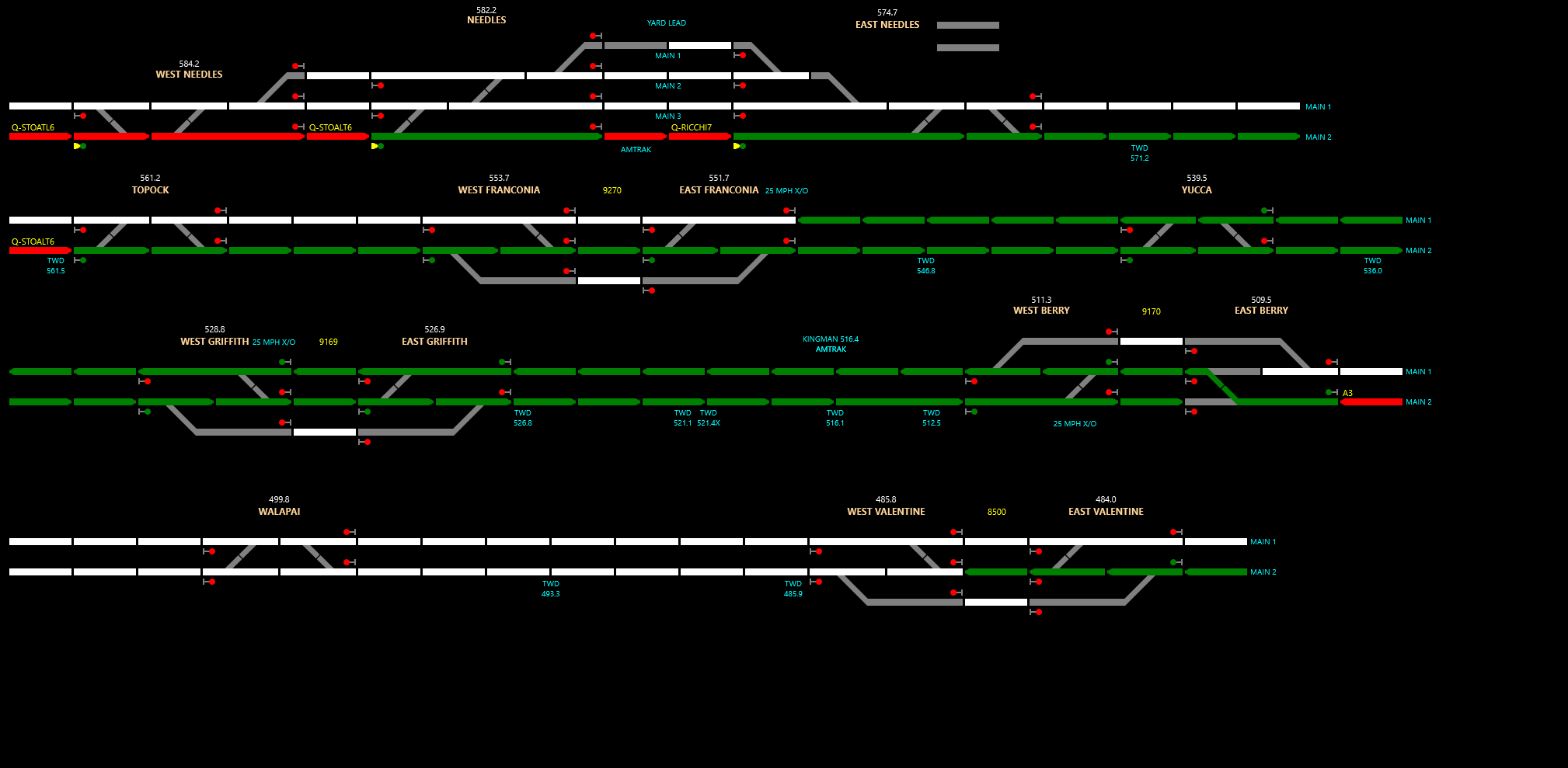 The BNSF Seligman Sub stretches through the vast Deserts of Eastern California and Western Arizona. Manage trains on the high speed double track mainline route!
